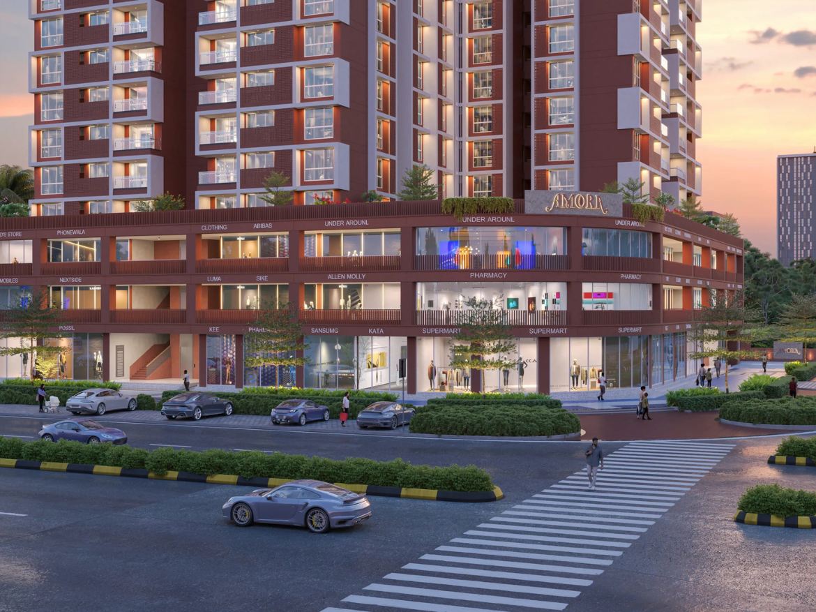 With two thoughtfully designed towers, Amora offers panoramic township views from your balcony. Residents enjoy high-end amenities, lush green landscapes, and a vibrant community lifestyle, while shop owners benefit from a prime location with high footfall and dedicated infrastructure.