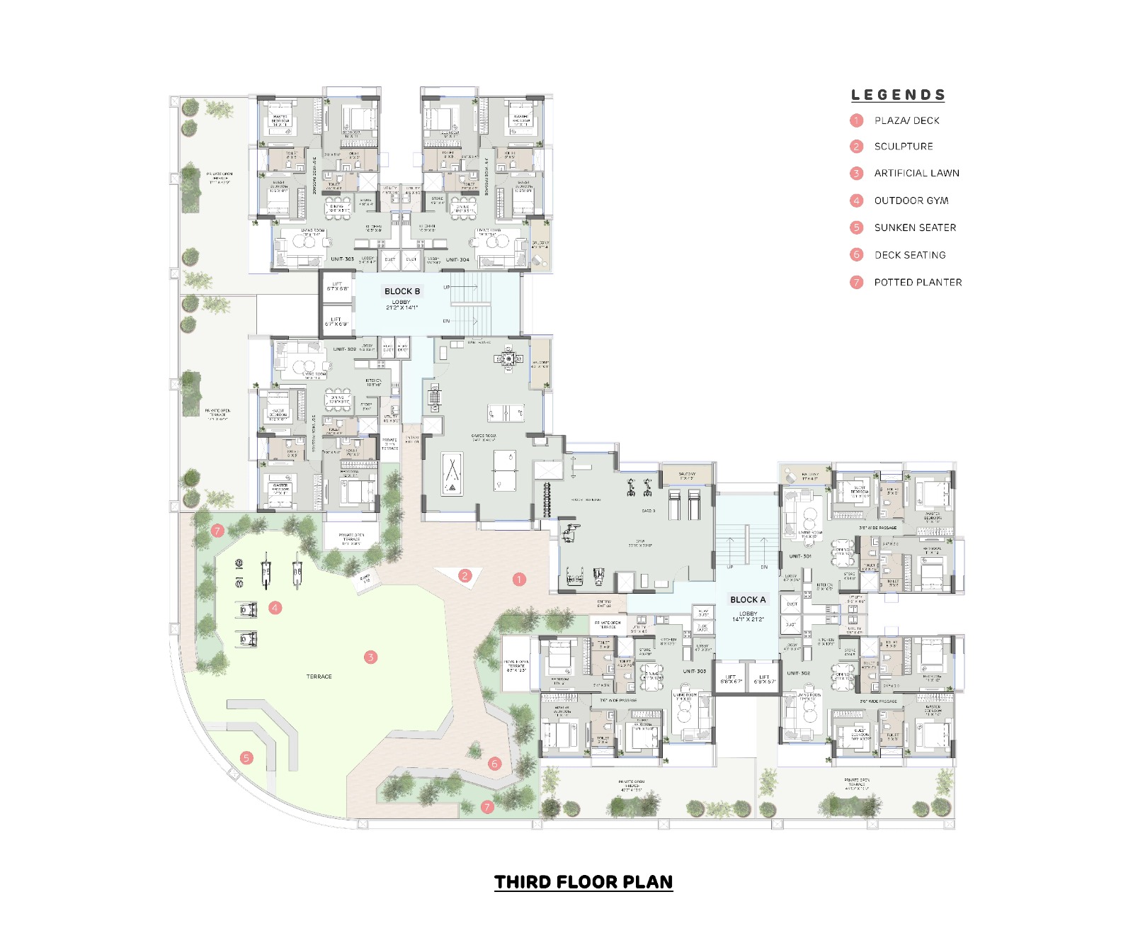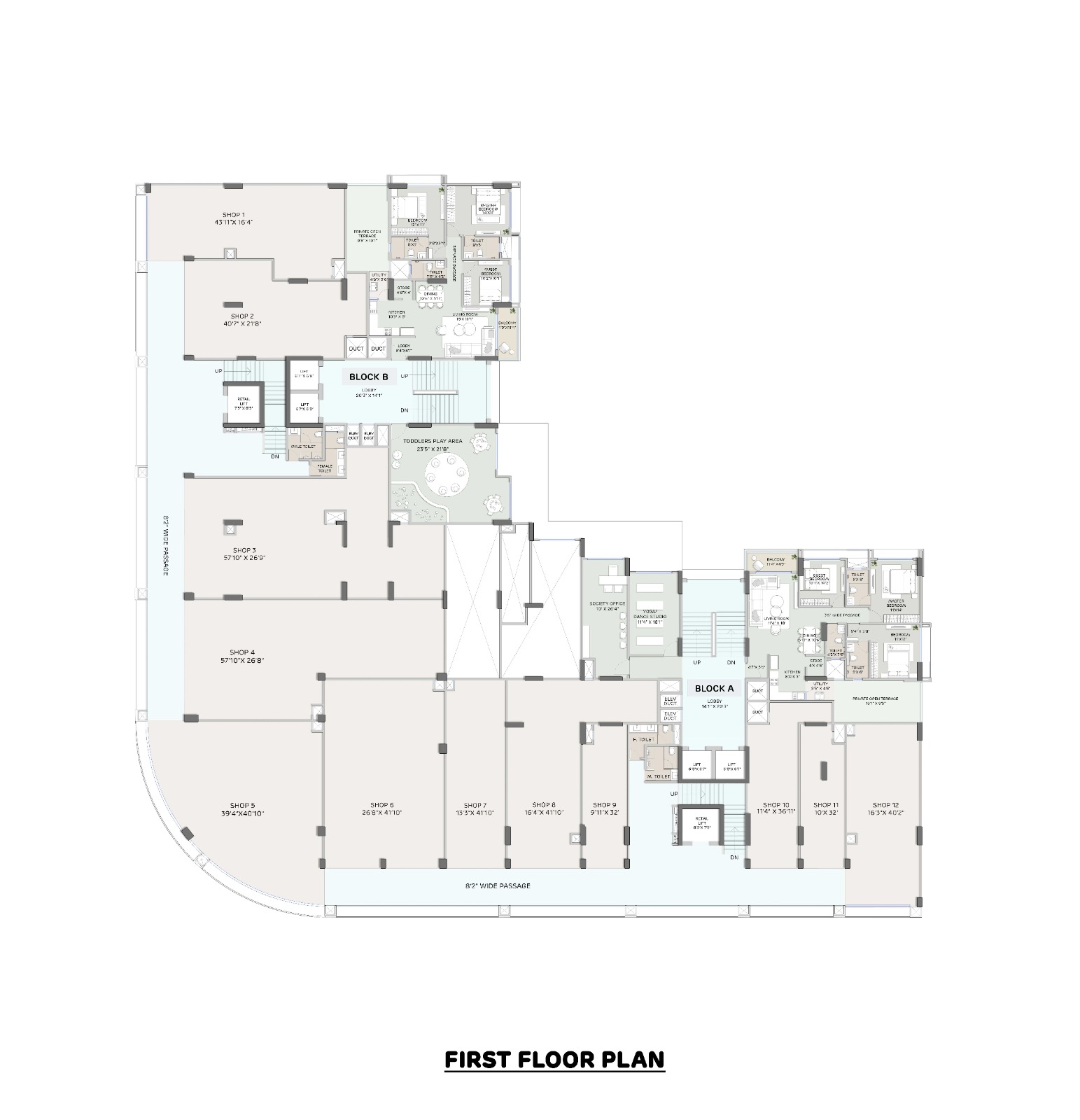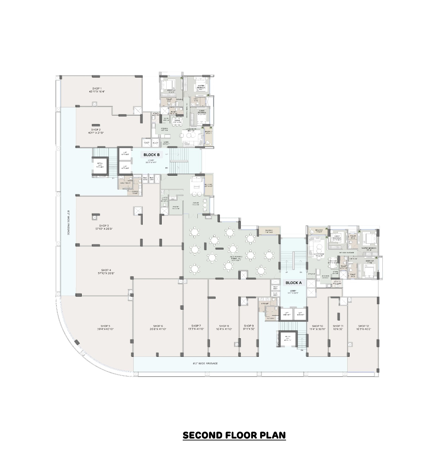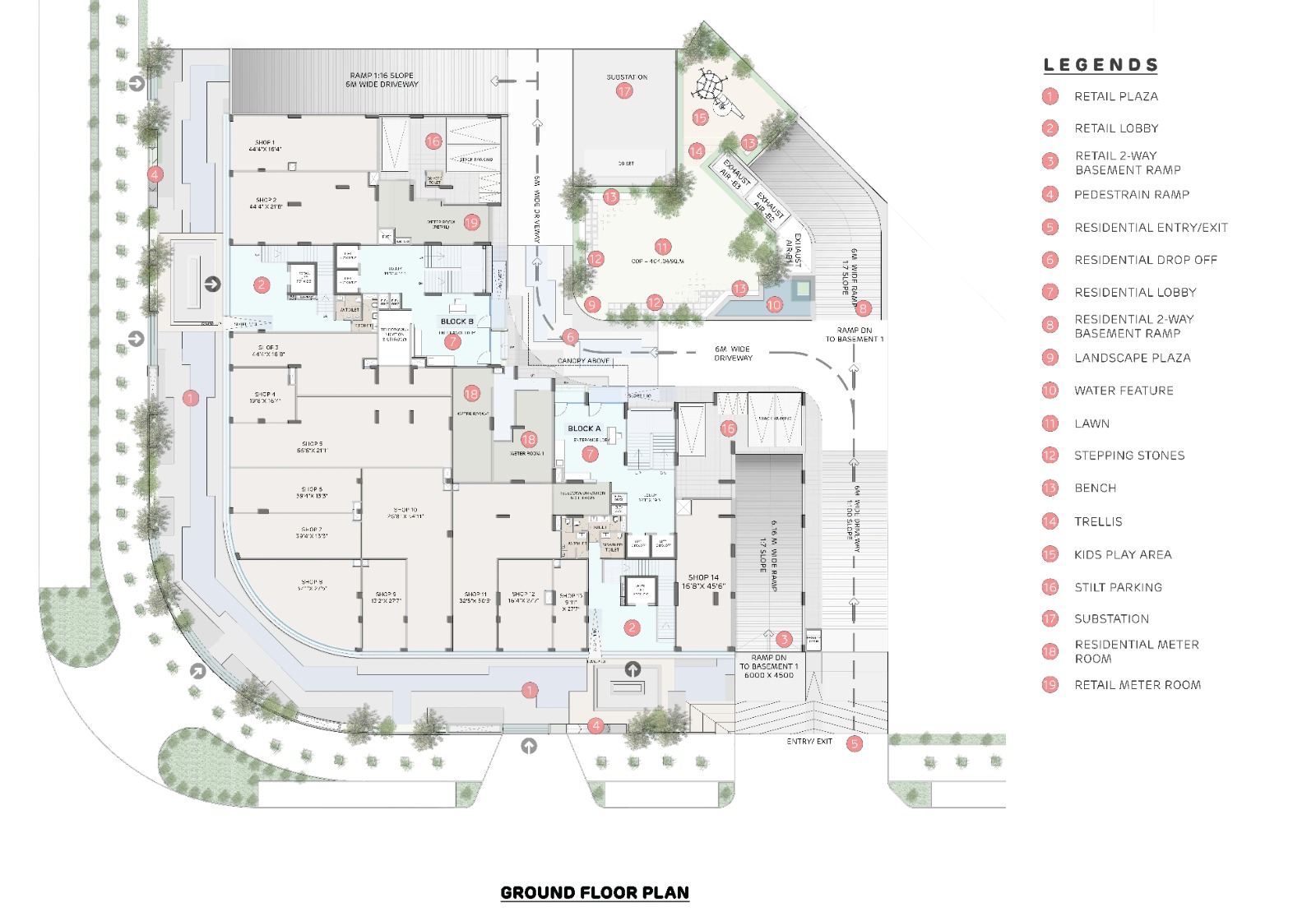 The project features three dedicated basements with separate entries for retail and residential zones to ensure convenience and privacy for all residents and shop owners: